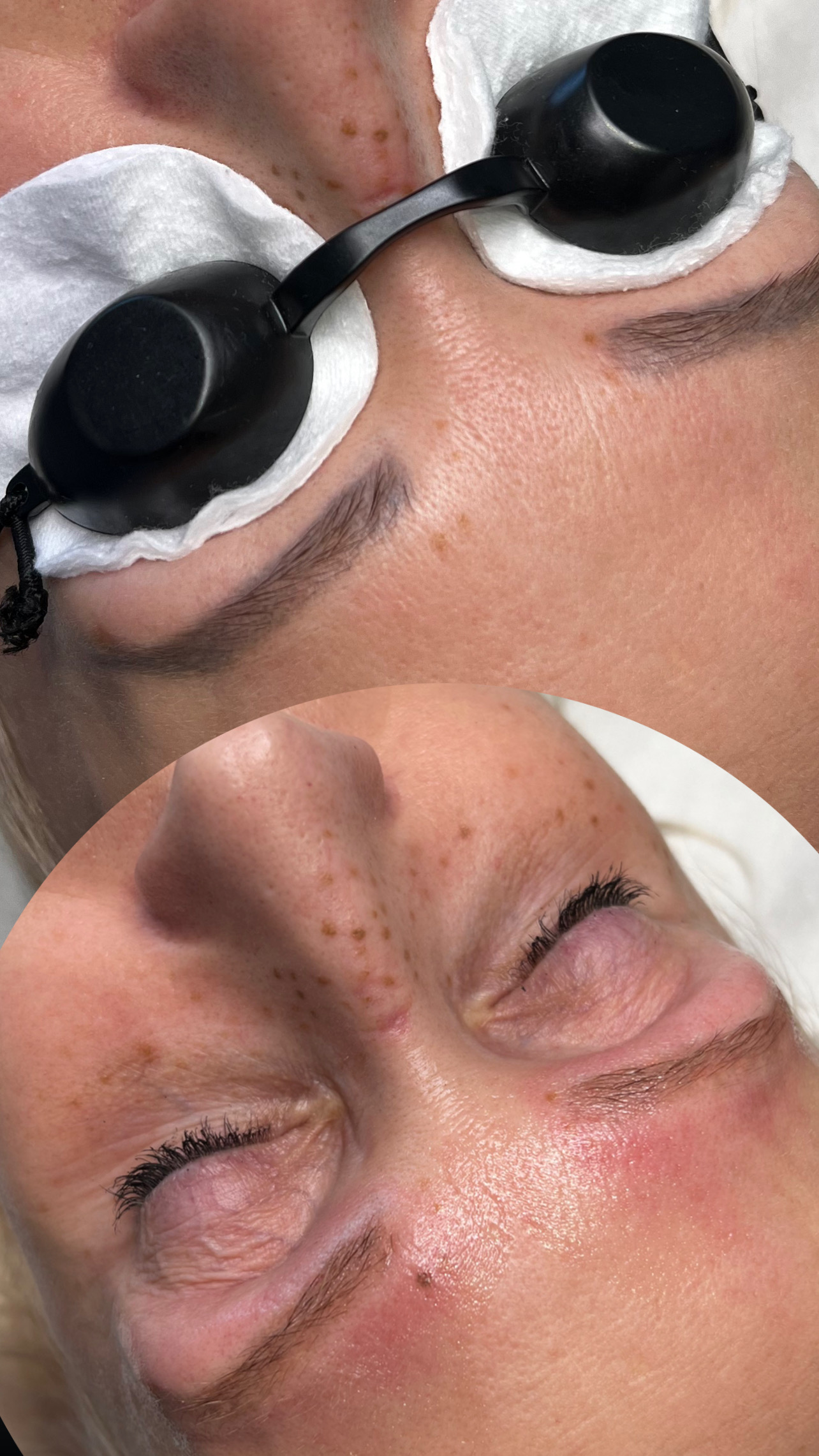 Po zabiegu w miejscu usuwanego barwnika pojawia się zaczerwienienie, lekka opuchlizna skóry, swędzenie, a czasami strupki. Bezpośrednio po zejściu strupków miejsce po usuwanym barwniku może być zaróżowione przed okres około 2 tygodni. Usunięcie tatuażu lub makijażu permanentnego wymaga przeprowadzenia od kilku do kilkunastu zabiegów.