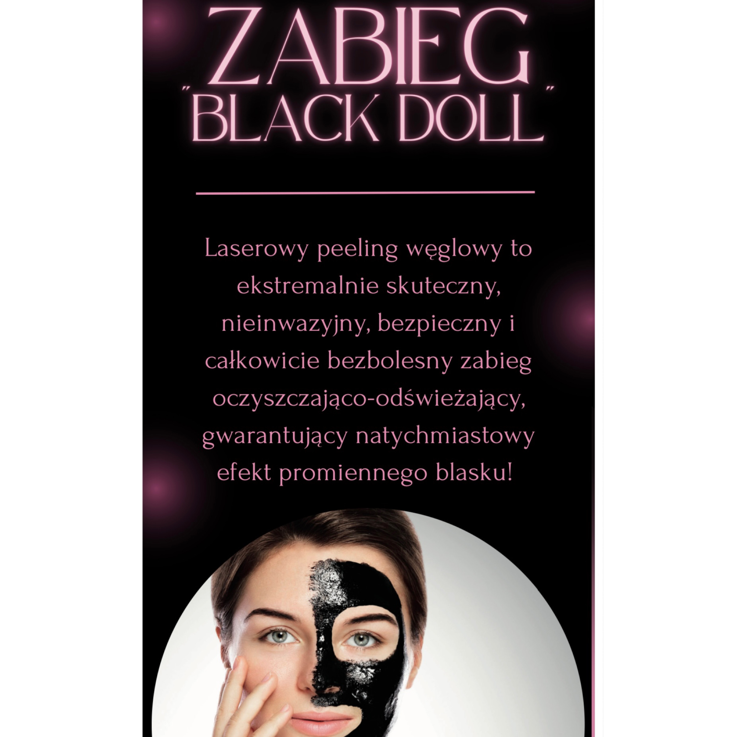 „BLACK DOLL” – LASEROWY PEELING WĘGLOWY to ekstremalnie skuteczny, nieinwazyjny, bezpieczny i całkowicie bezbolesny zabieg oczyszczająco-odświeżający, gwarantujący natychmiastowy efekt promiennego blasku!